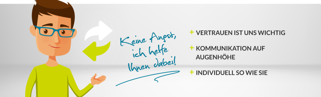 Wir führen eine Bestandsaufnahme durch. Somit können wir Sie in Zukunft perfekt betreuen. Außer der Bekanntgabe des richtigen Zuganges brauchen Sie nichts zu tun.